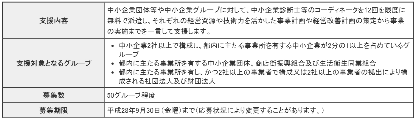 昨年までの「グループ戦略策定支援事業」が衣替えしたようで、内容が拡充されています。
